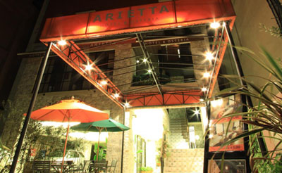赤いレンガ色をアクセントに植物のグリーン・テントのオレンジが鮮やかな外観は、イタリアにあるホテルのような雰囲気。朝はパン、コーヒー、ジュースの軽食をご用意しています。