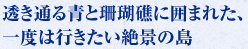 鹿児島県の奄美群島の最南端に位置する島一周たった21kmの小さな島ですが、透き通る美しい青い海と珊瑚礁に囲まれたまさに楽園のような絶景の島です。普段感じる事のできない感動を味わえます!