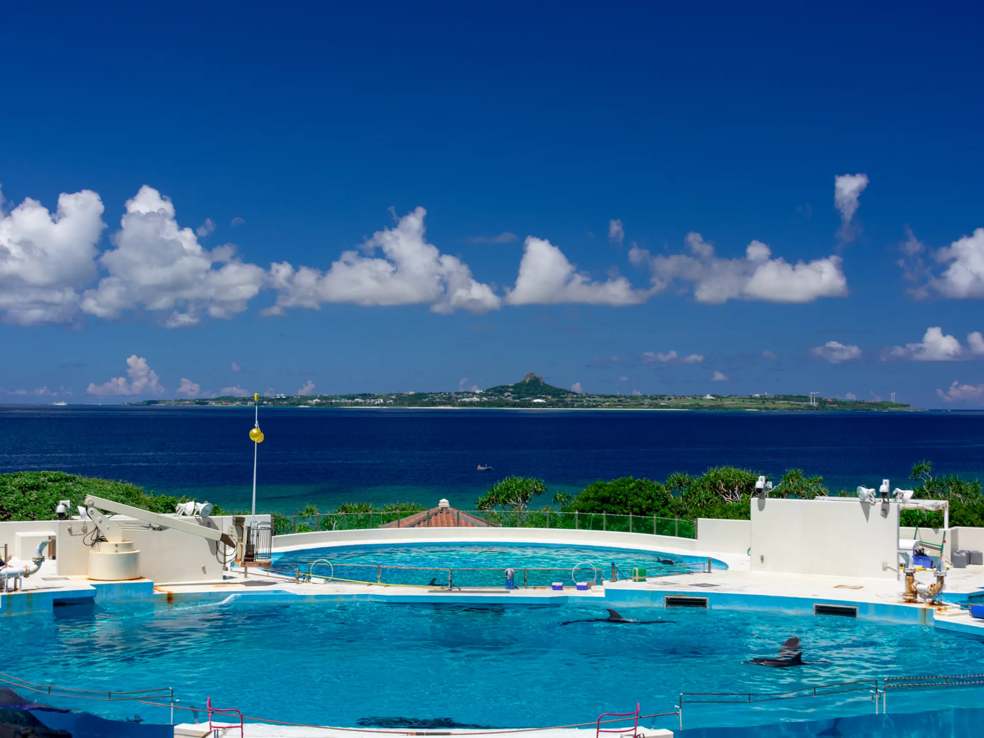 沖縄本島の本部半島にある国営沖縄記念公園に2002年に開園した水族館です。水族館入り口ではジンベイザメのモニュメントのお出迎えがあり、すぐ後の「沖縄美ら海水族館」の文字看板の前が記念撮影のスポットにもなっています。水族館内の一番大きな「黒潮の海」と呼ばれる水槽では、ジンベイザメやナンヨウマンタをはじめ多種多彩な魚たちが泳ぎ手で触れられそうな感動と興奮をお楽しみいただけます。また、「サンゴの海」では美しいサンゴが自然の光の中、色鮮やかに自然そのままの姿がごらんただけます。深海に生息する生き物を飼育している「深海の海」と呼ばれる水槽では水深200~700メートルで生きる深海の生き物をご覧になれます。周辺エリアではイルカショーが催される「オキちゃん劇場」や「ウミガメ館」、「マナティ館」などあり一日中お楽しみいただけます。沖縄格安旅行、沖縄格安ツアーで美ら海水族館へ行くならオススメ!
